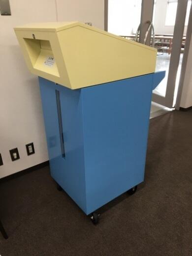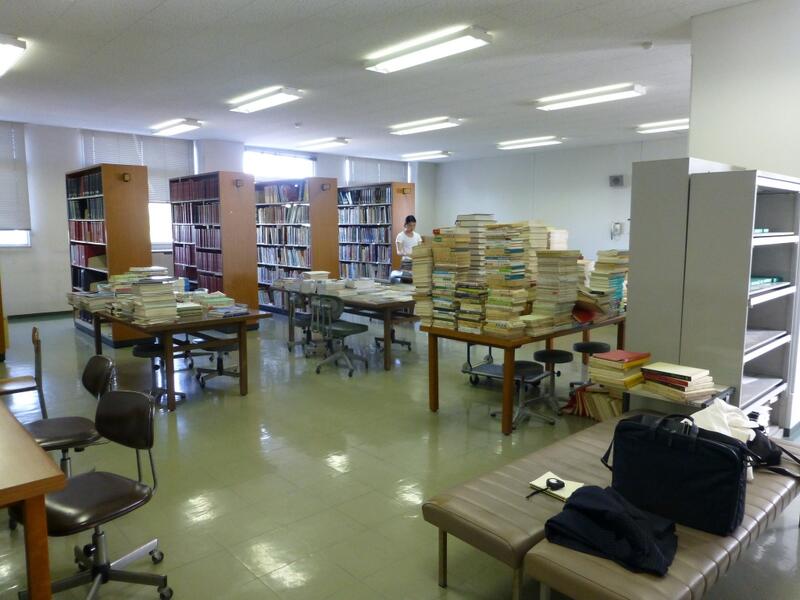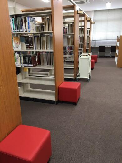 | | ← ← ← ← ← ← ← ← 少し流し読みするなら、書架サイドに 設置したスツールに腰かけて。 → → → → → → → → 閉館中の返却は、分室入口の外(学生 ホール)に設置した返却ポストに。 | |