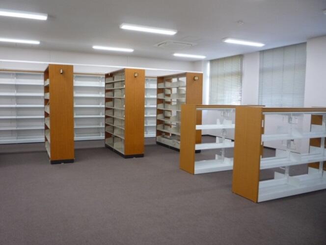 壁、床、天井、照明が一新!照明はLEDです! 新しい書架が続々と入ってきました!